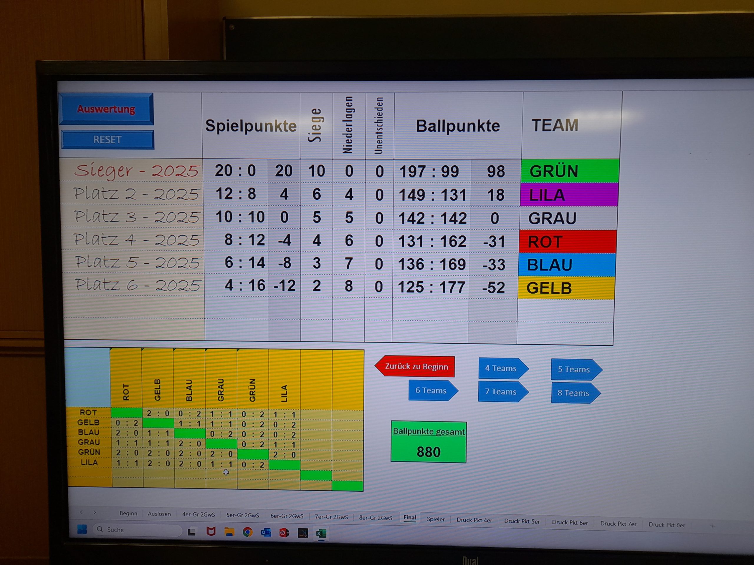 Pünktlich wie die Bahn begann am 26.09.2025,18.00.Uhr, unser Vereinsvolleyballturnier in der Sporthalle Saarstraße. Nach der Eröffnung durch Torsten Lilge, stellv. Vereinsvorsitzender und Maik Ludat, technischer Leiter, erfolgte die Auslosung der Mannschaften und das gemeinsame Gruppenfoto. Am 29.Turnier nahmen 11 Frauen und 22 Männer aktiv teil und es konnten 6 starke Mannschaften an den Start gehen. Start und Ende der Partien von 2×8 min Spielzeit war wie immer ein extra lang gezogener Lok-Pfeifton.
